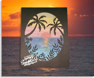After I had the backgrounds done, I just wanted to play with the layered water stamps that came in the kit. They are pretty easy to line up, which I like. After I stamped the water, I used the window die and cut it out in black and white. The results are just beautiful! I just have to add the sentiments and glue the top to a card base and these will be ready to go.