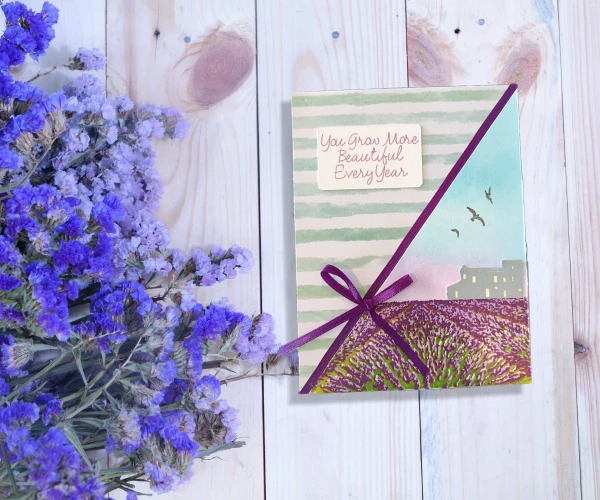 This beautiful landscape of a lavender field relaxes the soul. What a beautiful way to say Happy Birthday, I love you or a simple hello. Everyone loves the smell of lavender and the calming effects that it has.