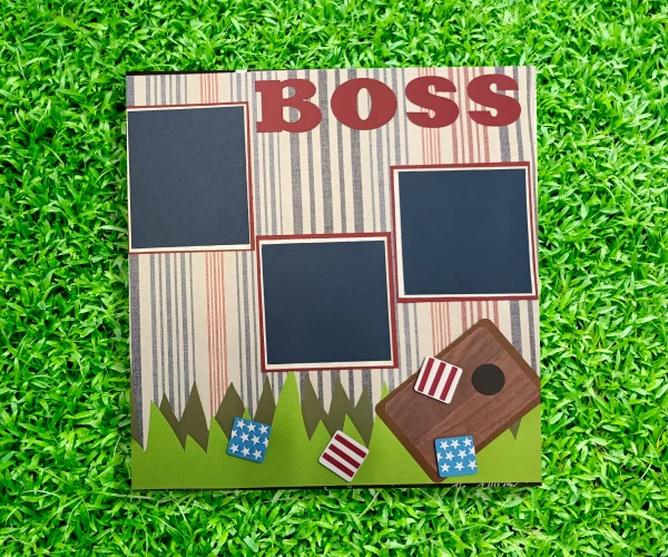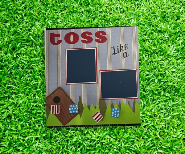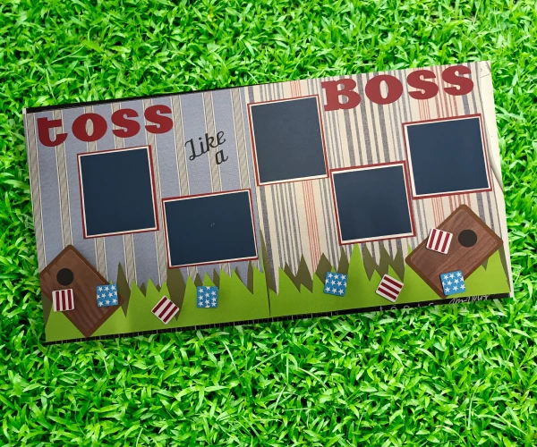 Cornhole - Dumb name, fun game. This two page spread helps you capture your domination of throwing little bean bags into a hole on a board. Pages come with page protectors so you can pop them straight into your book.